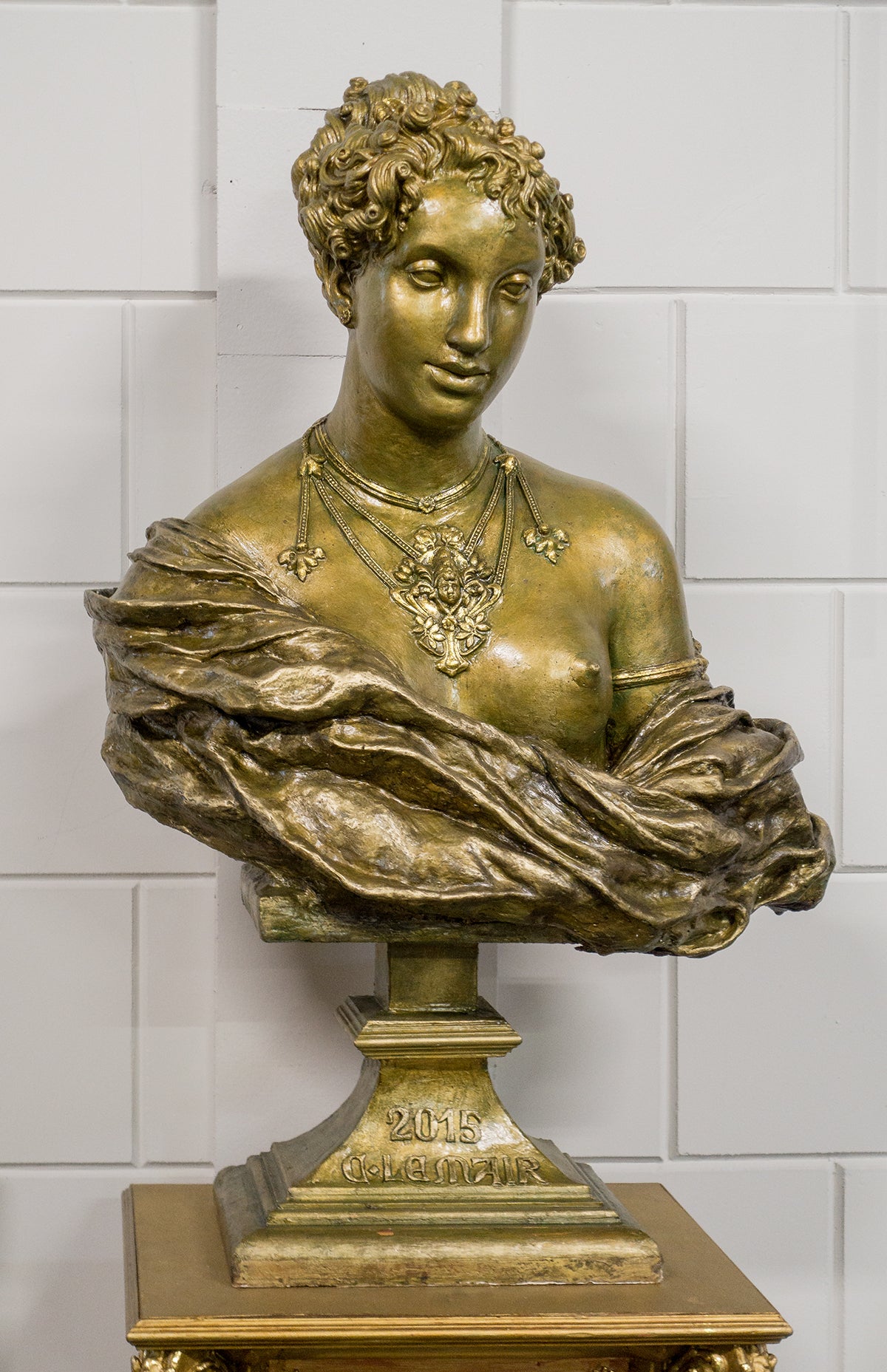 In de openbare ruimte verschijnt een ingetogen bronzen figuur (Aalst/Waalre, 2015), terwijl de paleismaquette verder verfijnd wordt met miniatuurdecor en spiegelend “water”. Alles is gebouwd om licht te sturen en vorm te laten spreken.