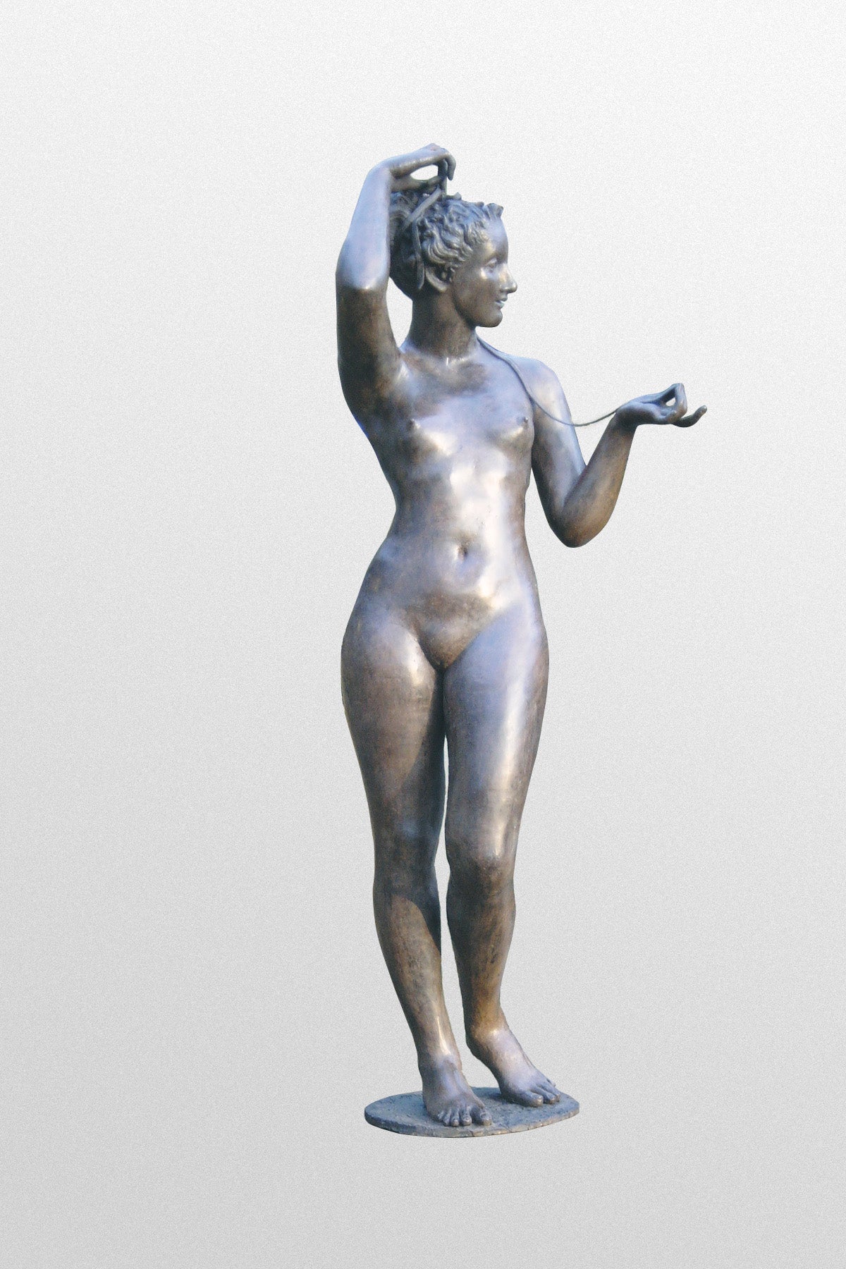Kleine bronzen met klassieke signatuur; compacte houdingen, duidelijke contouren, aandacht voor handen en draperie.
