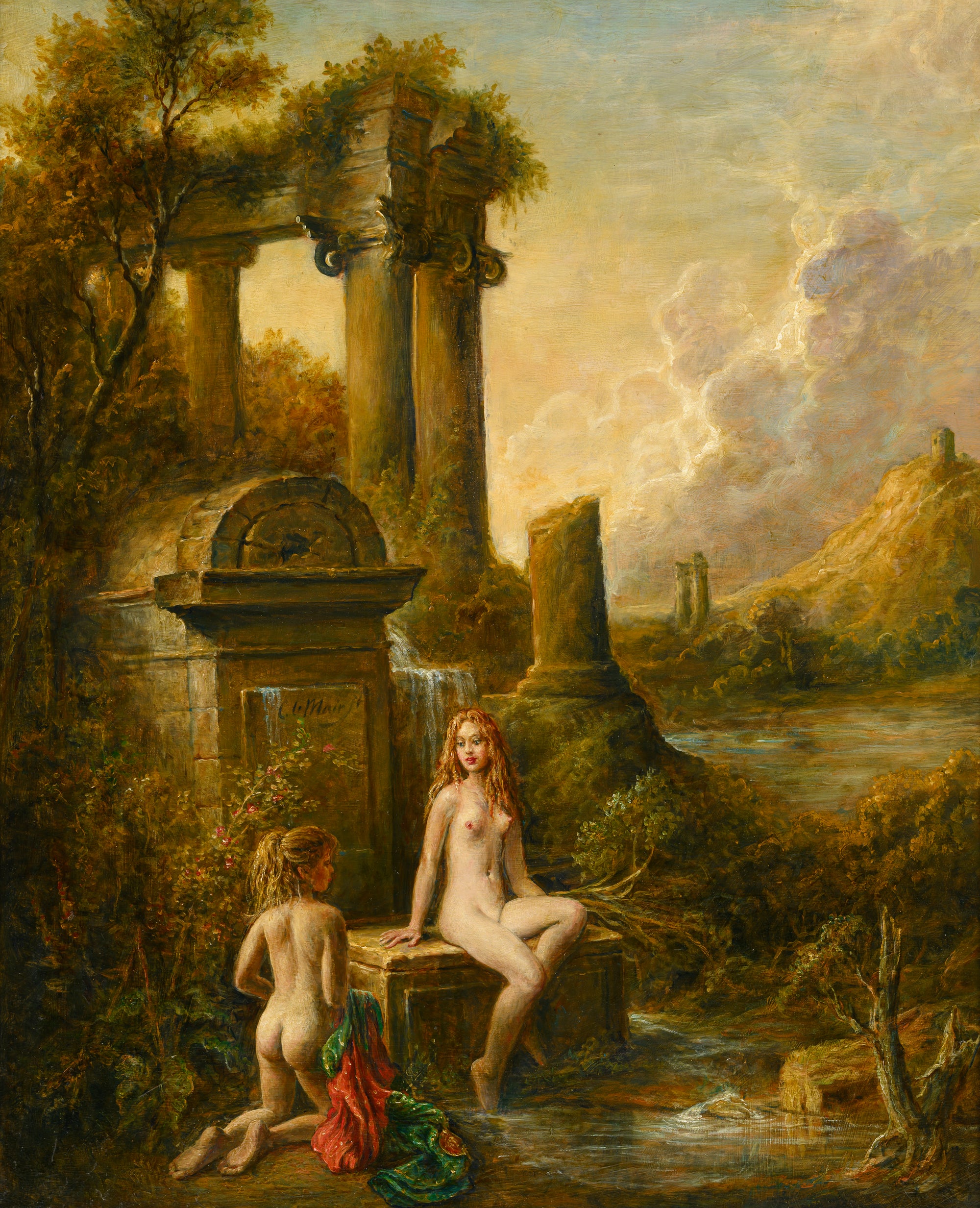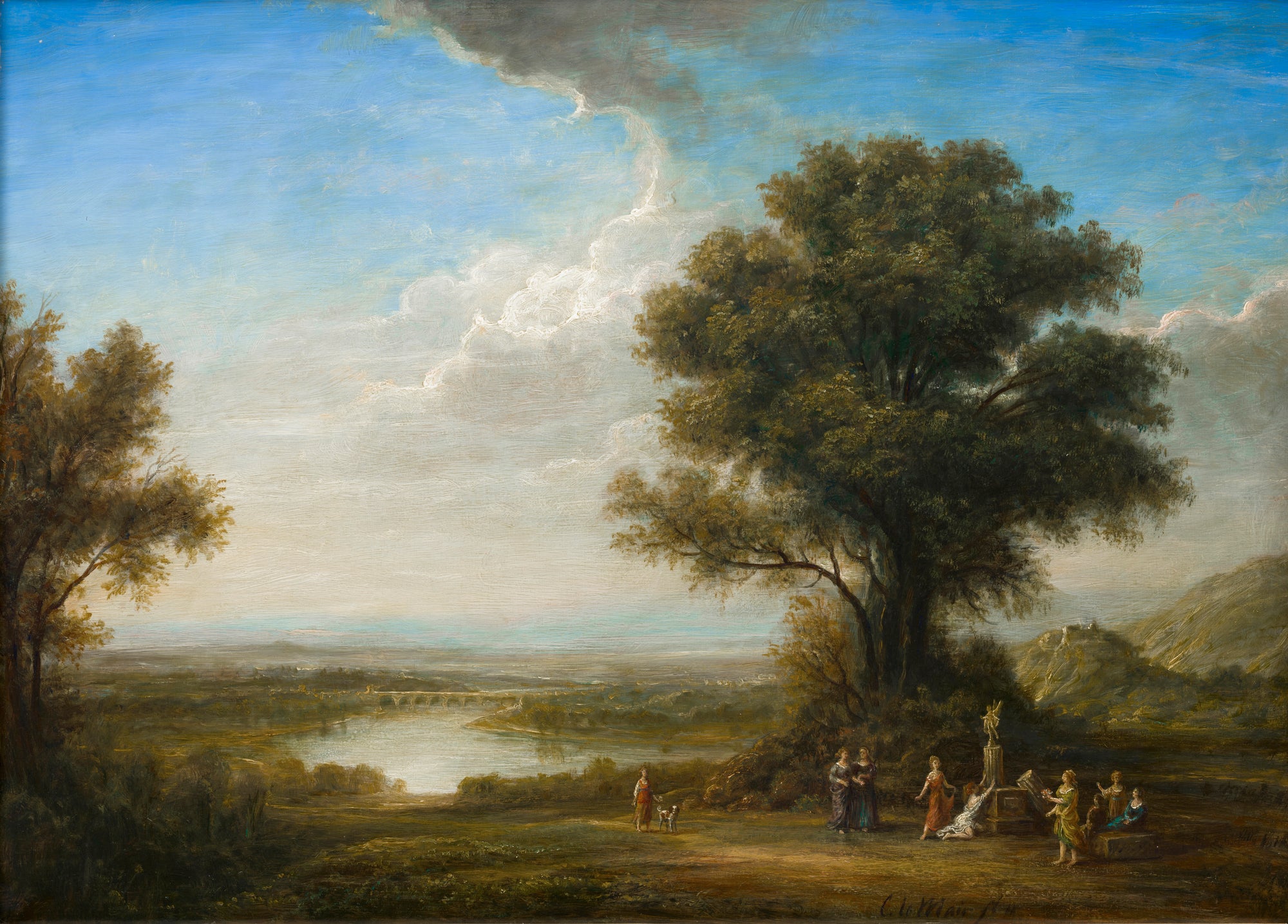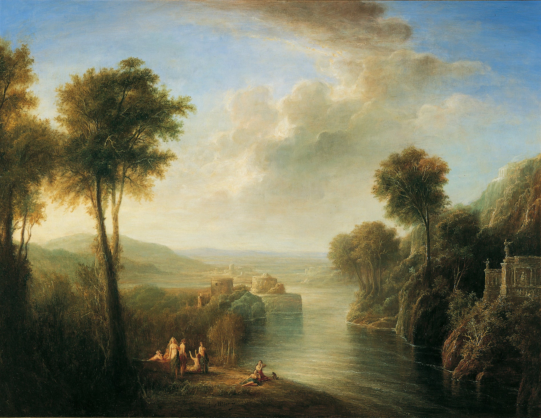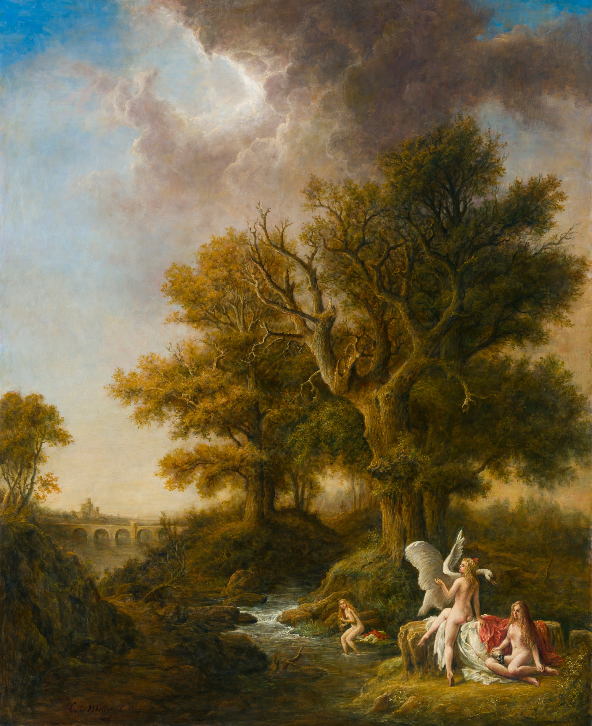 Cornelis le Mair schept landschappen als toneel voor tijdloze verhalen: rivieren sturen het oog, monumentale bomen vangen het licht, tussen ruïnes en fonteinen verschijnen nimfen, Leda of Apollo. Klassieke compositie en strakke tekening zorgen dat loof, water, steen en huid overtuigend ademen. Van Nederlandse riviergezichten tot tijdloze pastorale landschappen met figuren.