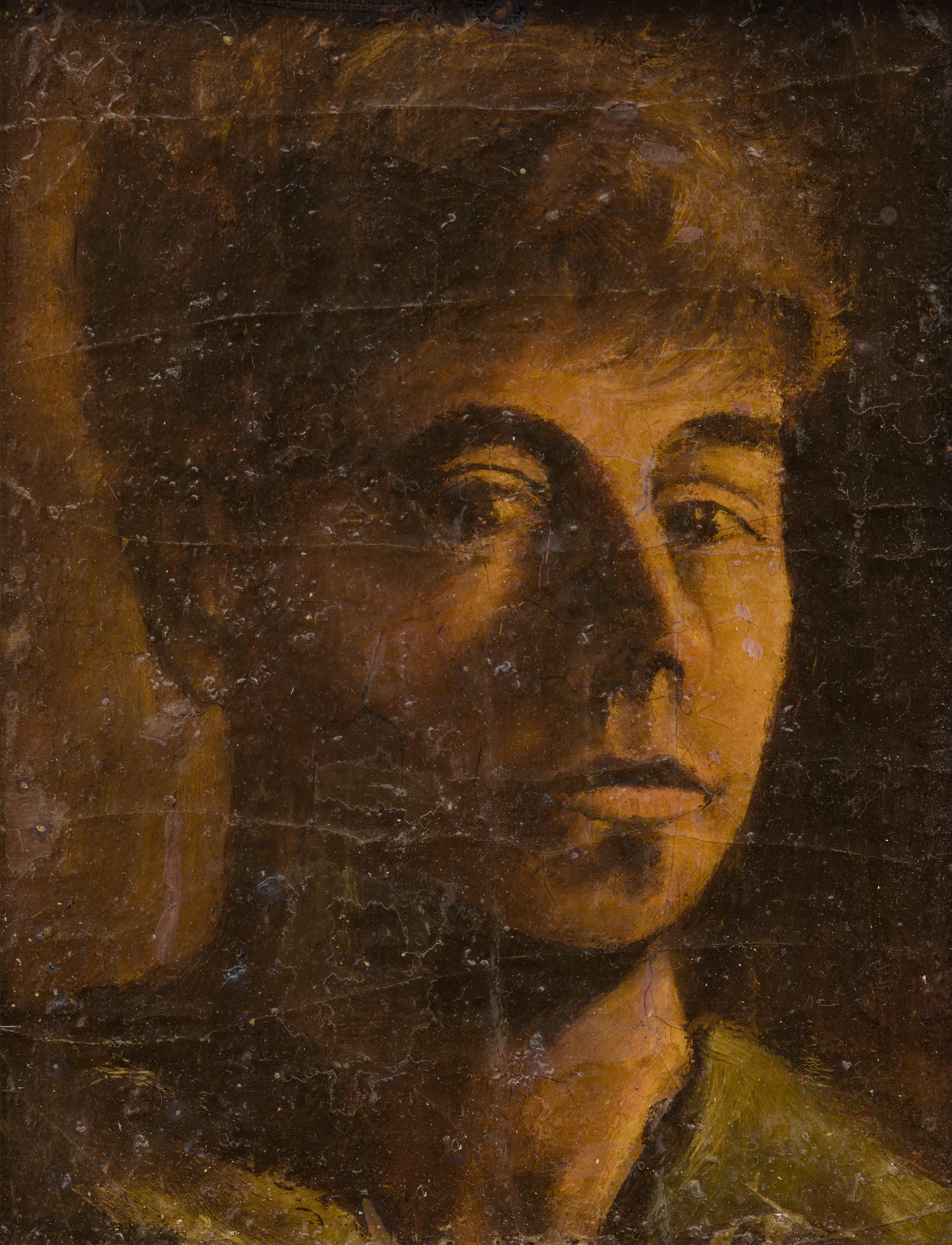 Uitbreiding naar halffiguur. Aardpigmenten (oker, gebrande sienna, ombers) domineren; koel-neutrale achtergronden. Textuurstudie in stofuitdrukking (muts, sjaal).